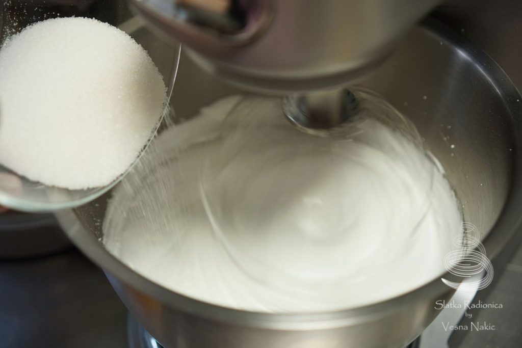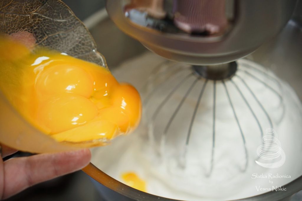 Brašno prosijati, dodati u njega prašak za pecivo i muškatni oraščić. Obe vrste šećera pomiješati. Razdvojiti bjelanjke od žumanjaka. Bjelanjke miksati, povremeno dodavati šećer i nastaviti sa miksanjem dok se šećer ne otopi. U čvrsti snijeg dodati žumanjke, jedno po jedno da se smjesa sjedini. Potom dodati ulje, a nakon njega suhe tvari. Dodati rum te potom ugasiti mikser.