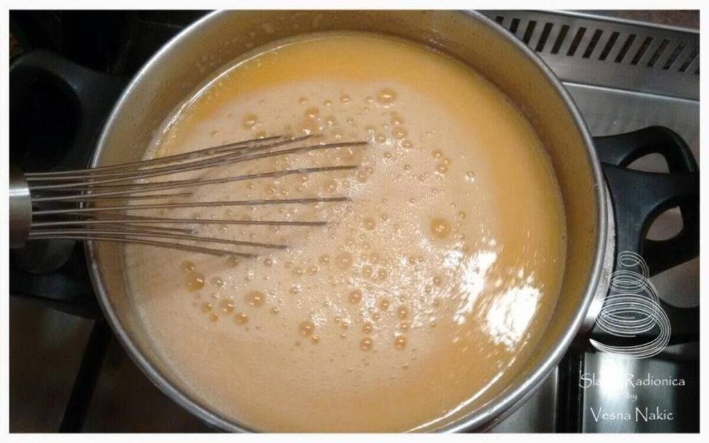 - Ako nemate termometar, gustoća koju želite je nešto tipa gustoće bešamel ili Holandez umaka ili pudinga
