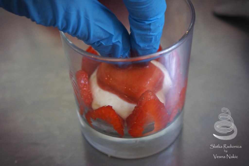 6. Jagode narezane na šnite poslagati u krug (ovisno o visini čaše. Ako ne stane,