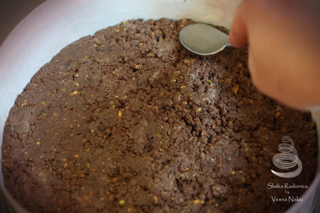 Namjerno sam išla na opciju torte bez pečenja. Torta od pistacija i čokolade se može pretvoriti i u bezglutensku, ukoliko kekse u podlozi zamijenite s onima bez glutena.