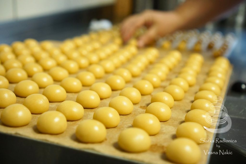 ao i kod skoro svih ostalih slastica i Breskvice se rade na bezbroj načina. Svatko ima svoj neki recept kojim je manje ili više zadovoljan. Kako god bilo, evo onog po kojem ih ja radim. Recept nije iz kuharice moje none, a bome niti iz mamine (ti su isti), nije niti neki koji sam sama osmislila, nego eto, kombinacija više njih, dosta proučavanja, pokoji savjet vrijedan zlata i danas sam sretna da mogu reći da radim Breskvice, s naglaskom na Breskvice, s kojima nemam problema. Samo znam da moram odvojiti pošteno vremena za napraviti ih.